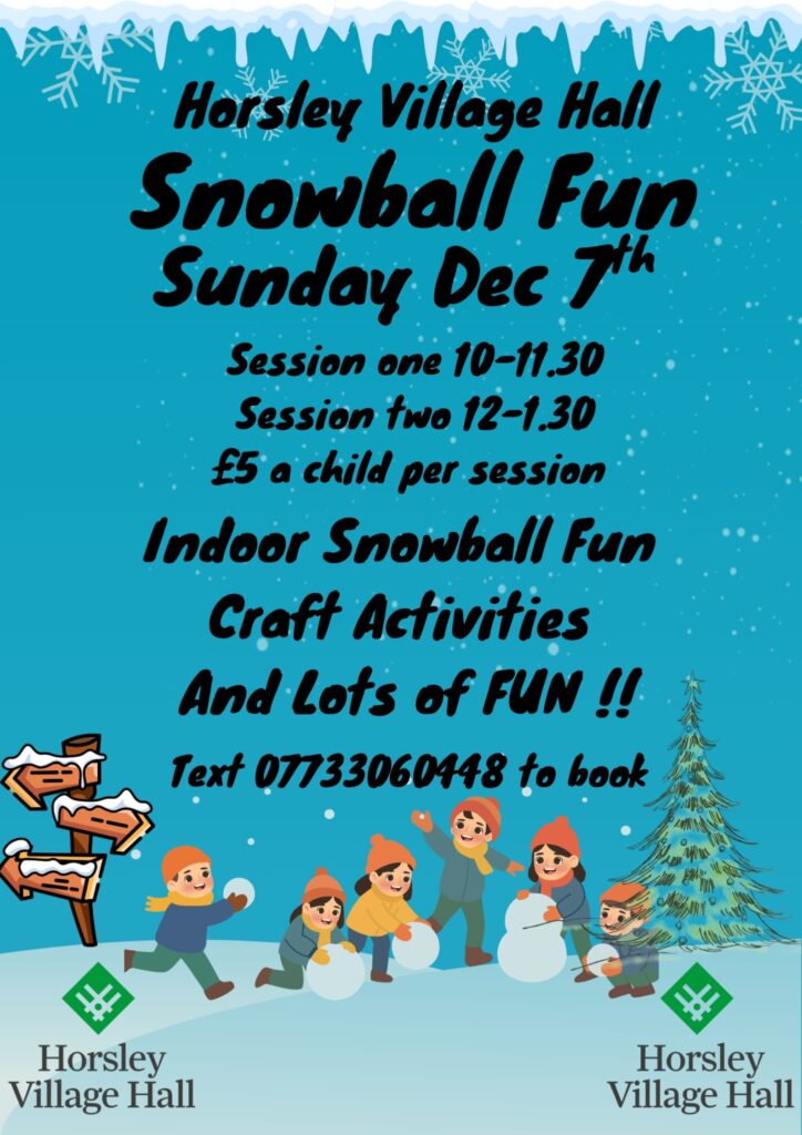 Join us for a fun snowballing session in the village hall – all details are on the poster.